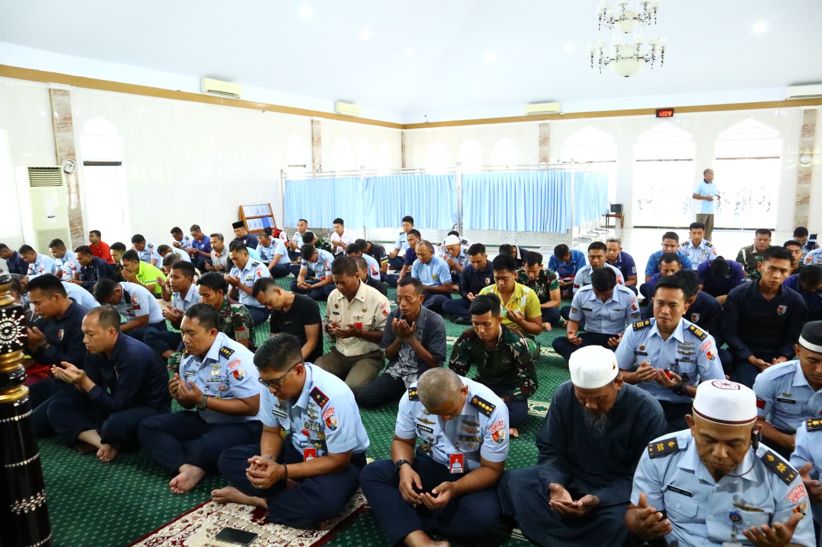 Doa Bersama di Masjid Nurussamawat Lanu Sultan Hasanuddin dipimpin langsung oleh Kabintal Lanud Sultan Hasanuddin, Letkol Sus Mohammad Mohtar, S.Ag. Doa bersama bagi umat Islam diawali dengan Sholat Dzuhur berjamaah dilanjutkan dengan pembacaan ayat suci Alquran.