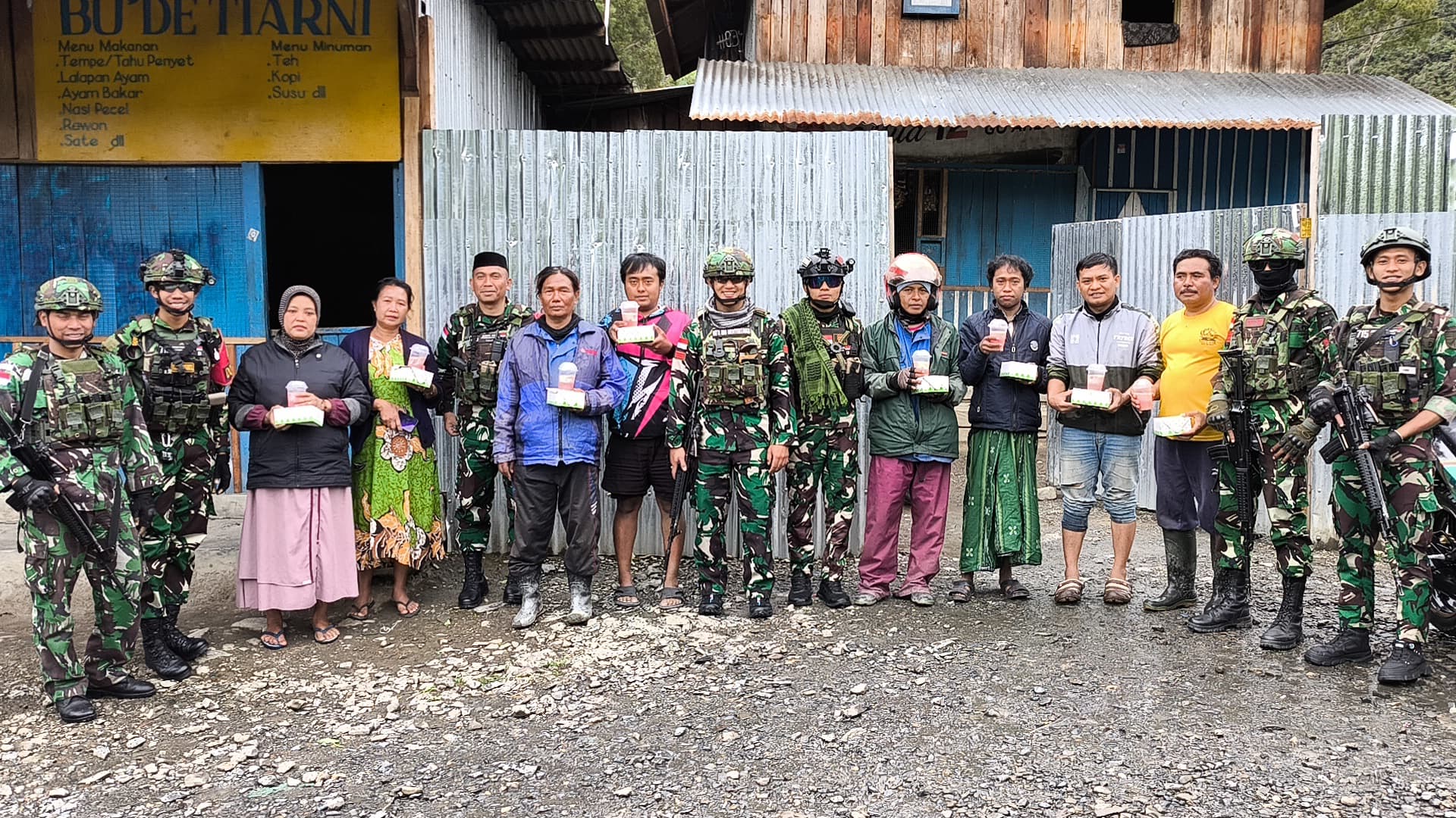 Puncak Jaya – Satgas Yonif 715/Mtl melaksanakan kegiatan Jum’at berkah dengan cara berbagi ta’jil kepada masyarakat Puncak Jaya yang sedang melaksanakan puasa dibulan Suci Ramadhan, walaupun sedang melaksanakan tugas di daerah rawan tidak melunturkan sedikitpun semangat personel Satgas Yonif 715/Mtl untuk berpuasa dan berbagi kepada sesama umat beragama, Jumat (28/03/25).