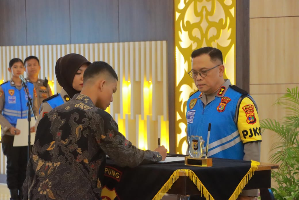 Komitmen tersebut ditandai Kapolda Helmy memimpin kegiatan penandatanganan pakta integritas penerimaan terpadu Anggota Polri tahun anggaran 2025 di Polda Lampung, Jumat (7/3/2025).