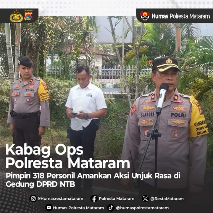 Kapolresta Mataram melalui Kabag Ops Kompol I Gede Sumadra Kerthiawan SH MH mengatakan bahwa hari ini kita akan melakukan pengamanan aksi Unjuk Rasa kembali, untuk itu diharapkan kepada personil yang bertugas agar melaksanakan tugas ini dengan serius terutama di depan gerbang untuk berhadapan dengan massa aksi nantinya, karena hal ini merupakan marwah DPRD NTB dan pintu gerbang baik utama, selatan, utara akan ditutup total.