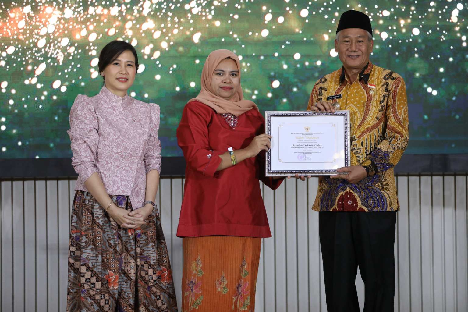 Penghargaan tersebut diserahkan langsung oleh Ketua Komisi Perlindungan Anak Indonesia (KPAI), Ai Maryati Solihah bersama Wamen PPPA  RI, Veronica Tan kepada kepada Wakil Bupati Tuban, Drs. Joko Sarwono dalam Penganugerahan Kabupaten/Kota Layak Anak (KLA) Tahun 2025 yang digelar di Jakarta, Kamis (08/08/2025). Penyerahan penghargaan turut disaksikan Menteri PPPA RI, Arifatul Choiri Fauzi dan Menteri Koordinator Bidang Pembangunan Manusia dan Kebudayaan (Menko PMK), Pratikno.