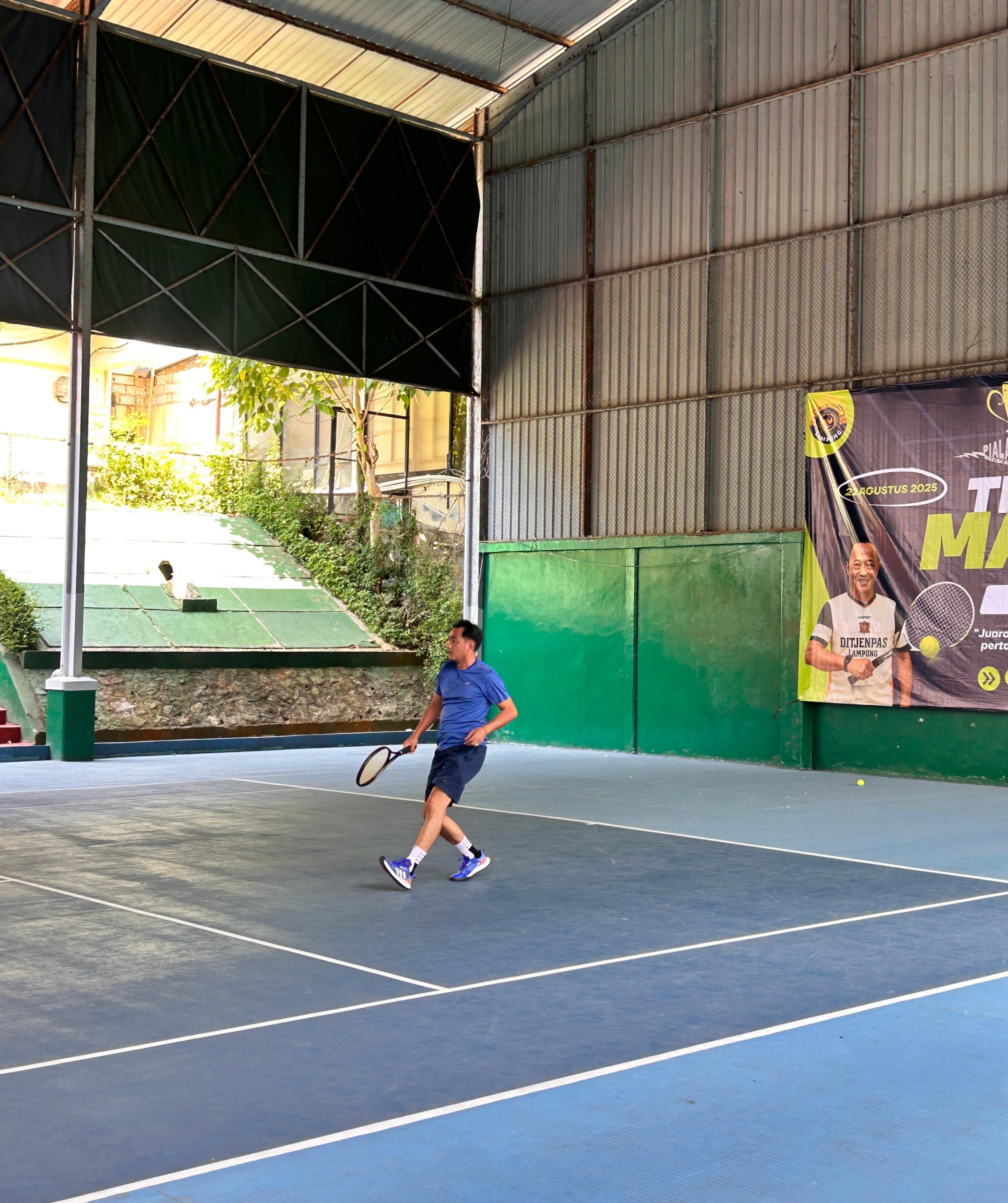 Lampung Selatan, Transpos.id. – Kepala Lembaga Pemasyarakatan (Lapas) Kelas IIA Kalianda, Beni Nurrahman, menunjukkan kesungguhannya dalam berolahraga dengan mengikuti kompetisi Kakanwil Cup cabang tenis lapangan di Lapangan Gubernur hari ini (22/8).