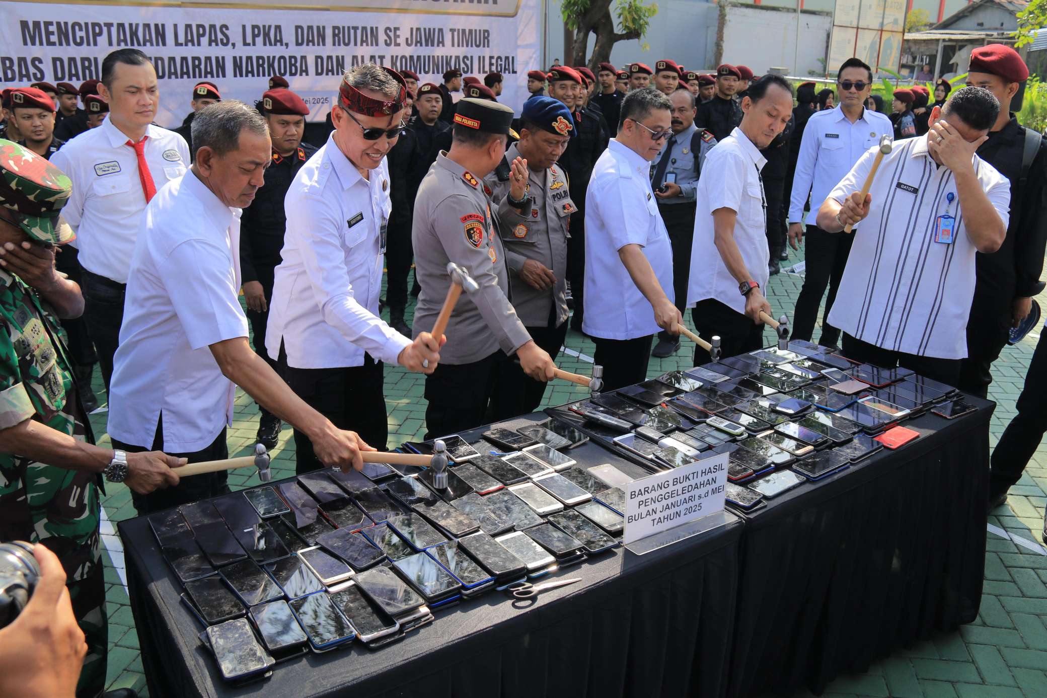 Sebagai bentuk konkret dari komitmen tersebut, kegiatan ini juga disertai dengan pemusnahan telepon genggam hasil sitaan dari operasi penggeledahan rutin di 39 Lapas dan Rutan se-Jawa Timur sepanjang tahun 2025. Ratusan unit HP yang menjadi barang bukti dimusnahkan secara simbolis.