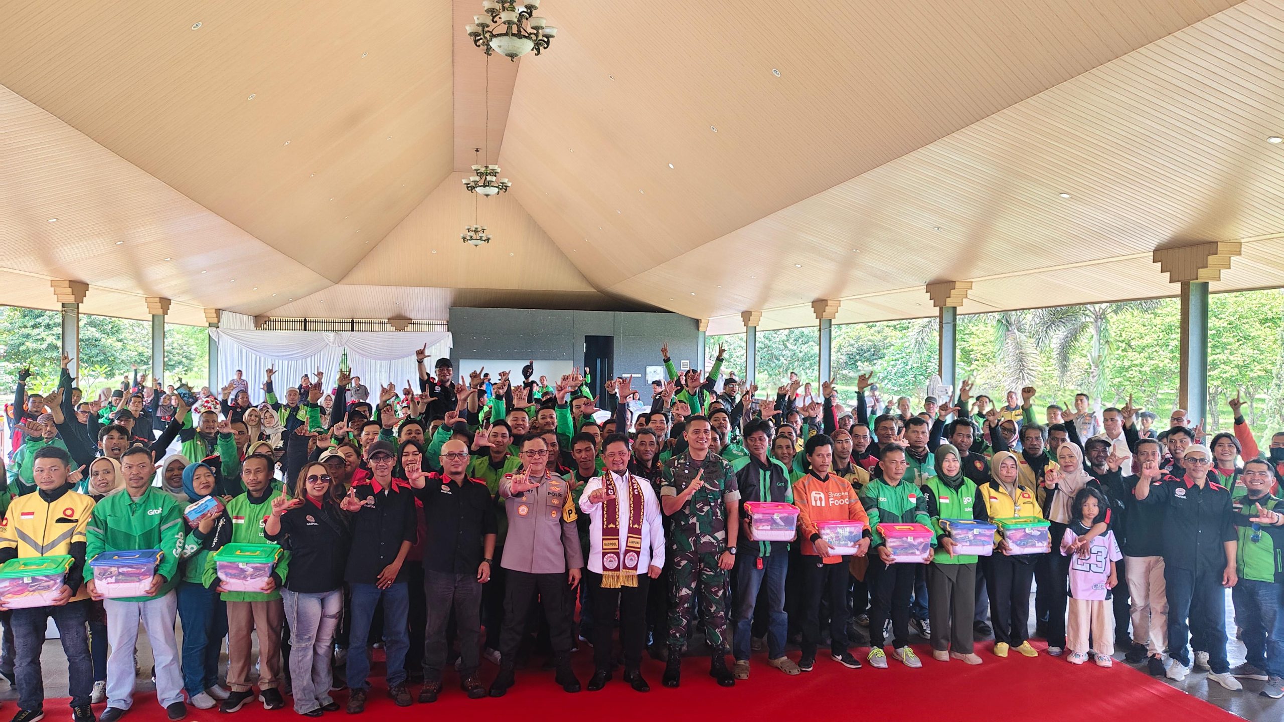 Acara ini dihadiri pula oleh Kapeldam XXI Raden Inten Kolonel Cpl Affianto, Kadishub Lampung Bambang Sumbogo, Ketua Gaspool Miftahul Huda, serta ratusan driver online dari berbagai wilayah, bertempat di taman Agro Park Lampung. Rabu(15/10/25)