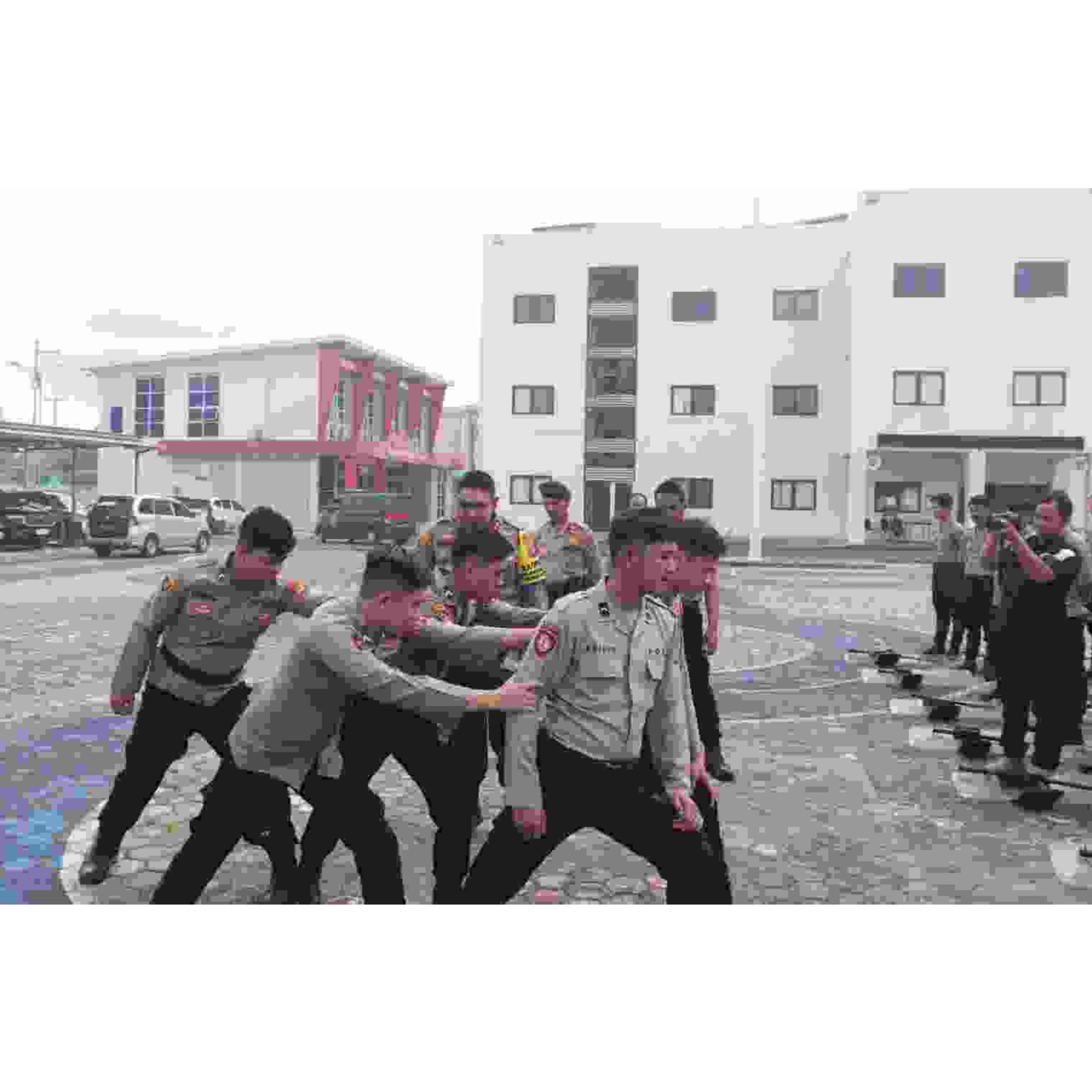 Kapolres AKBP Yusriandi Yusrin memberikan contoh langsung dalam latihan tersebut. Ia memperagakan kuda-kuda sempurna, menunjukkan bahwa postur yang benar akan menghasilkan formasi yang kuat.