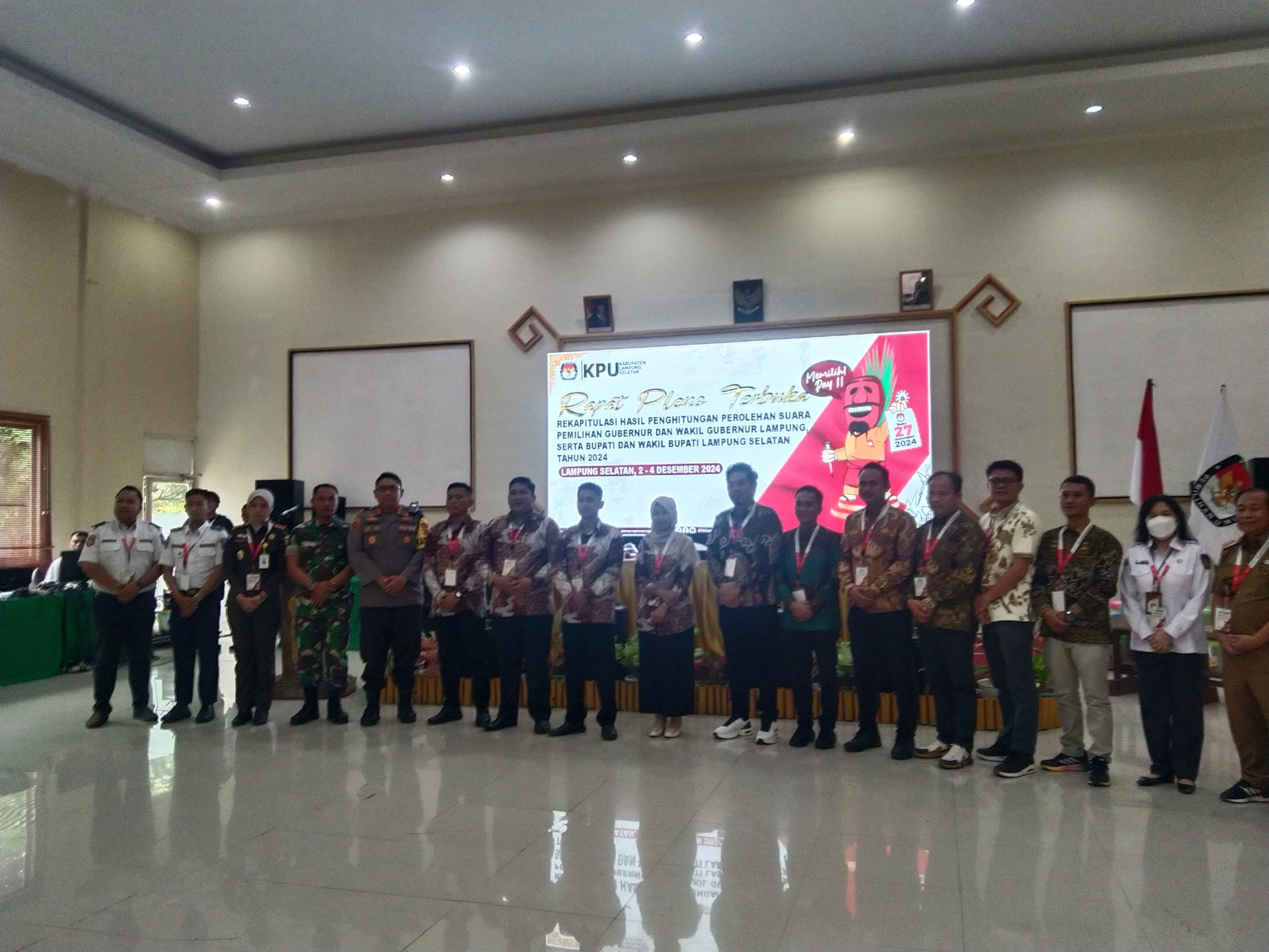 Rapat pleno ini dihadiri oleh Dandim 0421/LS, Kajari Lampung Selatan, Ketua KPU dan Bawaslu, Kesbangpol, serta perwakilan dari berbagai instansi terkait para pemangku kepentingan mencerminkan untutk bersama -sama untuk sepakat menyukseskan Pilkada.