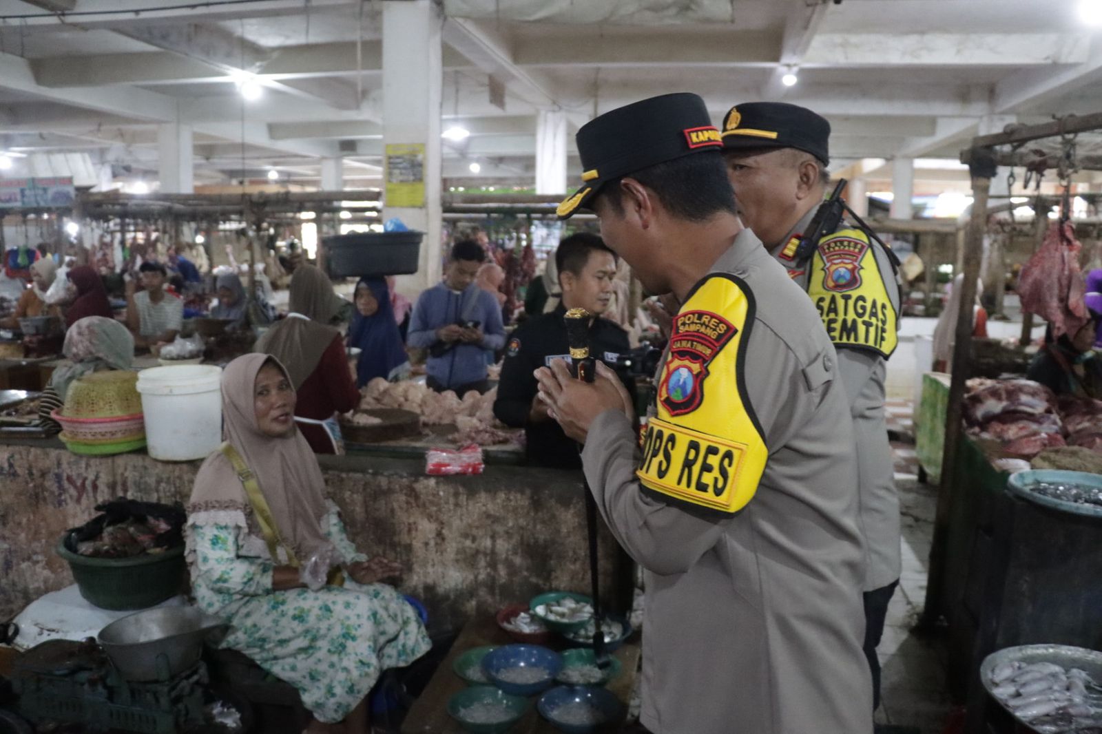 AKBP Hartono juga berkomunikasi dengan para pedagang untuk mendapatkan informasi terkait harga serta jumlah ketersediaan bahan pokok seperti beras, gula, minyak goreng, daging, dan kebutuhan pokok lainnya.