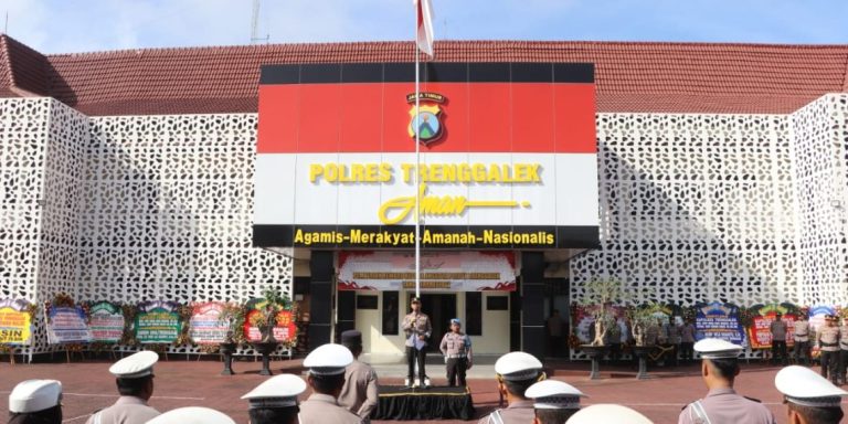 Trenggalek – Kepala Kepolisian Resor Trenggalek AKBP Ridwan Maliki, S.H., S.I.K., M.I.K., memimpin apel perdana yang diikuti oleh pejabat utama, Kapolsek jajaran dan seluruh anggota di halaman Mapolres Trenggalek. Senin, (21/4).