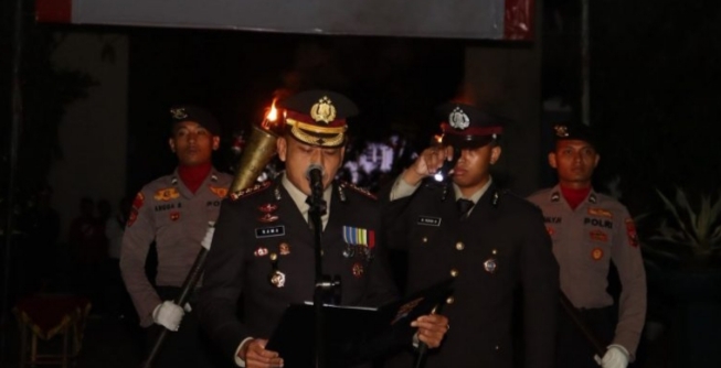Rangkaian upacara diawali dengan penghormatan kepada arwah para pahlawan, dilanjutkan dengan penyalaan obor oleh Kapolresta Banyuwangi. Penyalaan obor tersebut menjadi simbol semangat yang tak pernah padam dalam menjaga keutuhan Negara Kesatuan Republik Indonesia (NKRI).