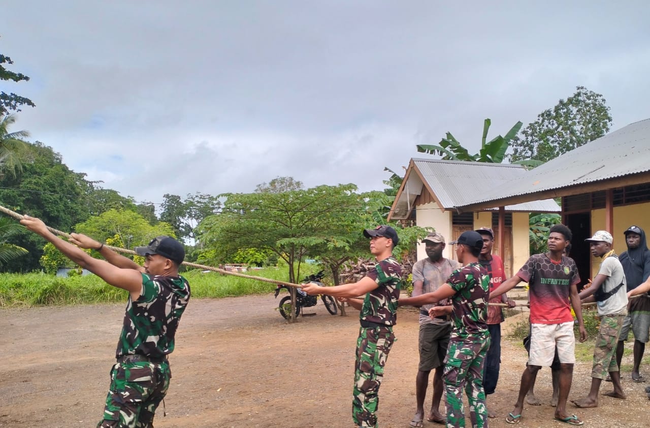 Merauke – Semangat pengabdian dan kemanunggalan TNI dengan rakyat kembali ditunjukkan oleh Satgas Pamtas RI-PNG Yonif 312/Kala Hitam, yang ipimpin oleh Letda Inf Dimaz dan personel Pos Kondo melaksanakan kegiatan karya bakti bersama masyarakat di Kampung Kondo, Distrik Naukenjerai, Kabupaten Merauke, Sabtu (12/7/2025). Kegiatan ini berupa penebangan pohon dan pembersihan lingkungan yang melibatkan prajurit TNI dan warga setempat secara gotong royong.