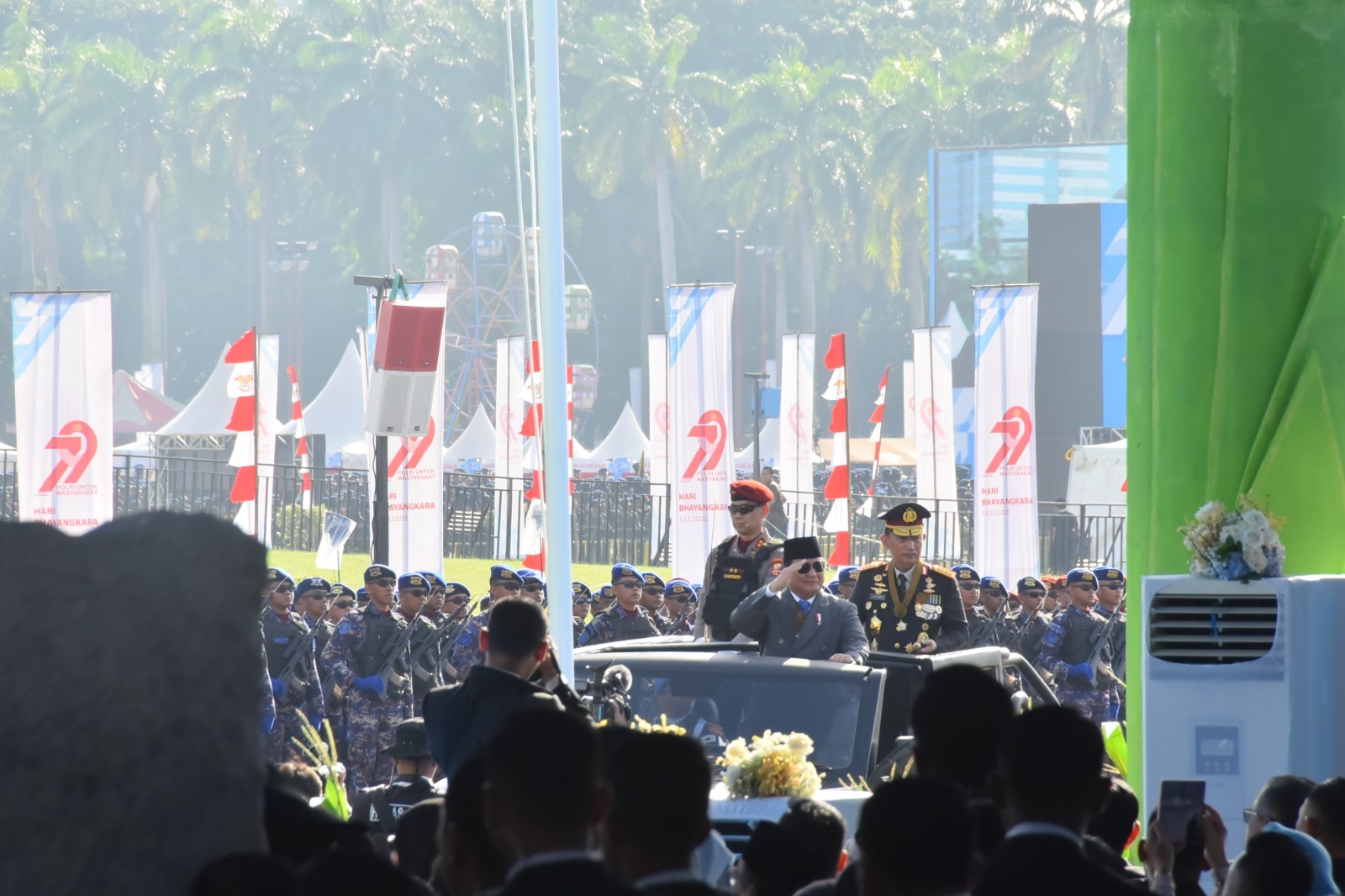 Bertindak sebagai Inspektur Upacara, Presiden Republik Indonesia Prabowo Subianto menyampaikan amanatnya, bahwa kepentingan rakyat harus diutamakan dan berada di atas kepentingan yang lain. “Polisi Indonesia harus di tengah-tengah rakyat, harus merasakan penderitaan rakyat, harus merasakan kesulitan rakyat, harus mendengar jeritan hati rakyat”, ujarnya.