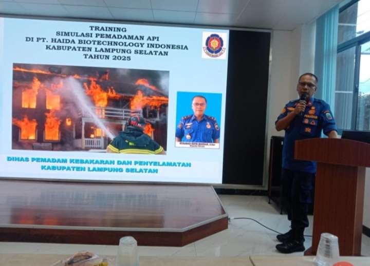 Kepala Dinas Damkarmat Lampung Selatan Berikan Sosialisasi Pencegahan Kebakaran di PT. Haida Biotechnology Indonesia