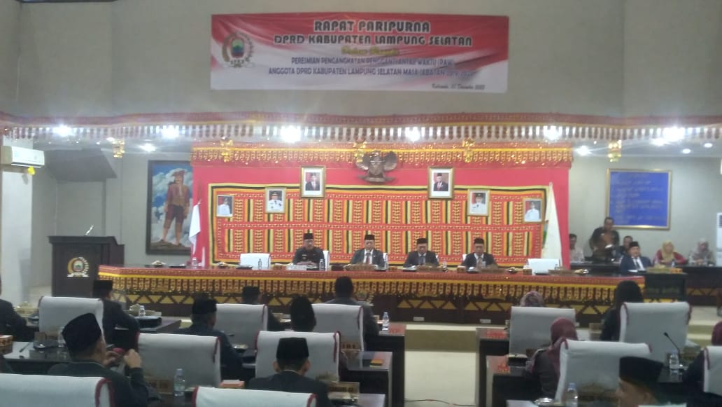 “Maka dengan mengucap Bismillahirohmannirohim. Rapat Paripurna DPRD Kabupaten Lampung Selatan, dimasa persidangan ke 2 (dua), rapat ke 20 tahun sidang ke 2023. Dalam rangka peresmian pengangkatan pergantian antar waktu. Dengan ini rapat Resmi dan terbuka untuk umum.”