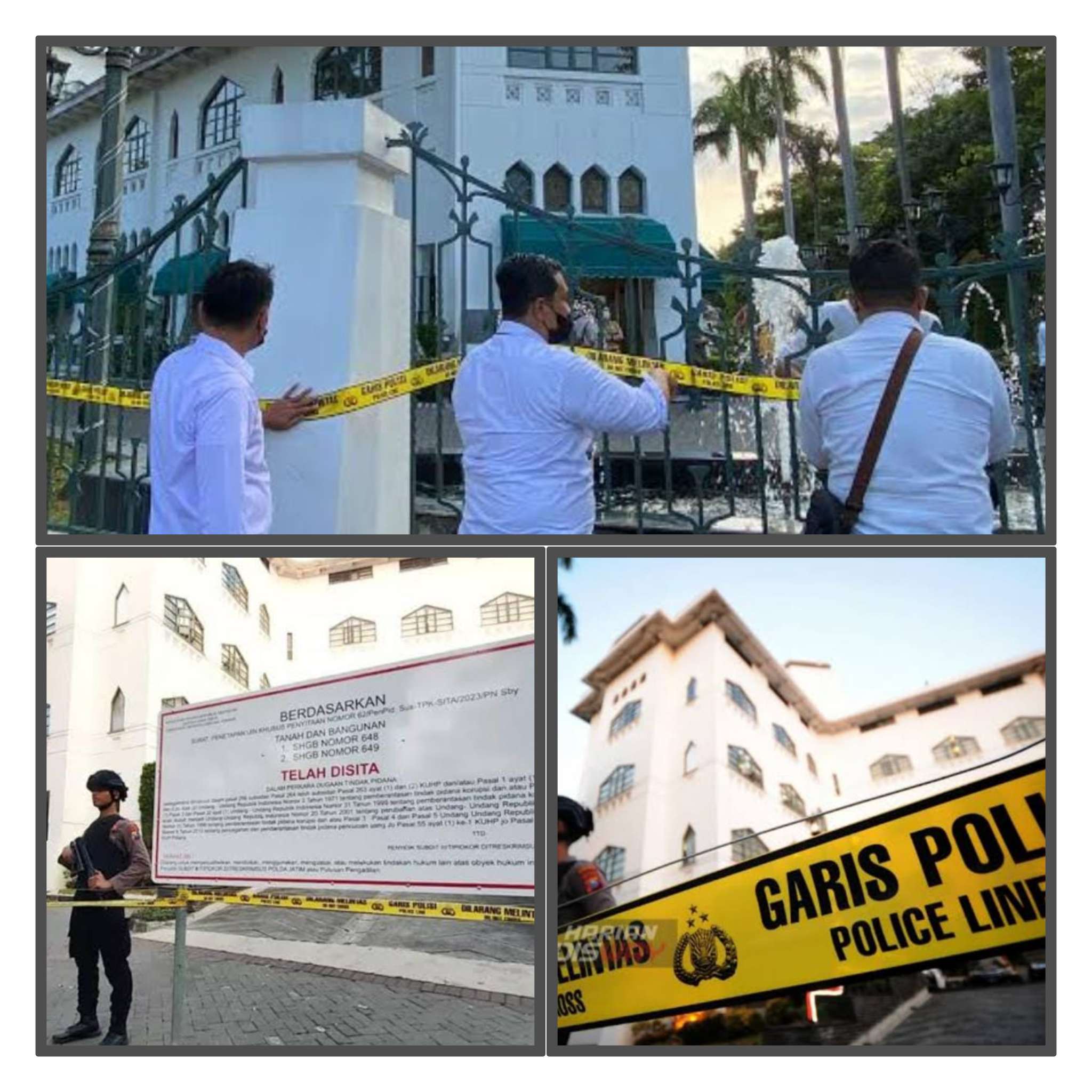 Sampai dibuat Pos Jaga, yang berjaga Piket dari Satuan Brimob Polda Jatim. Terlihat pula, mobil Barakuda terparkir dipintu masuk Gedung Wismilak.