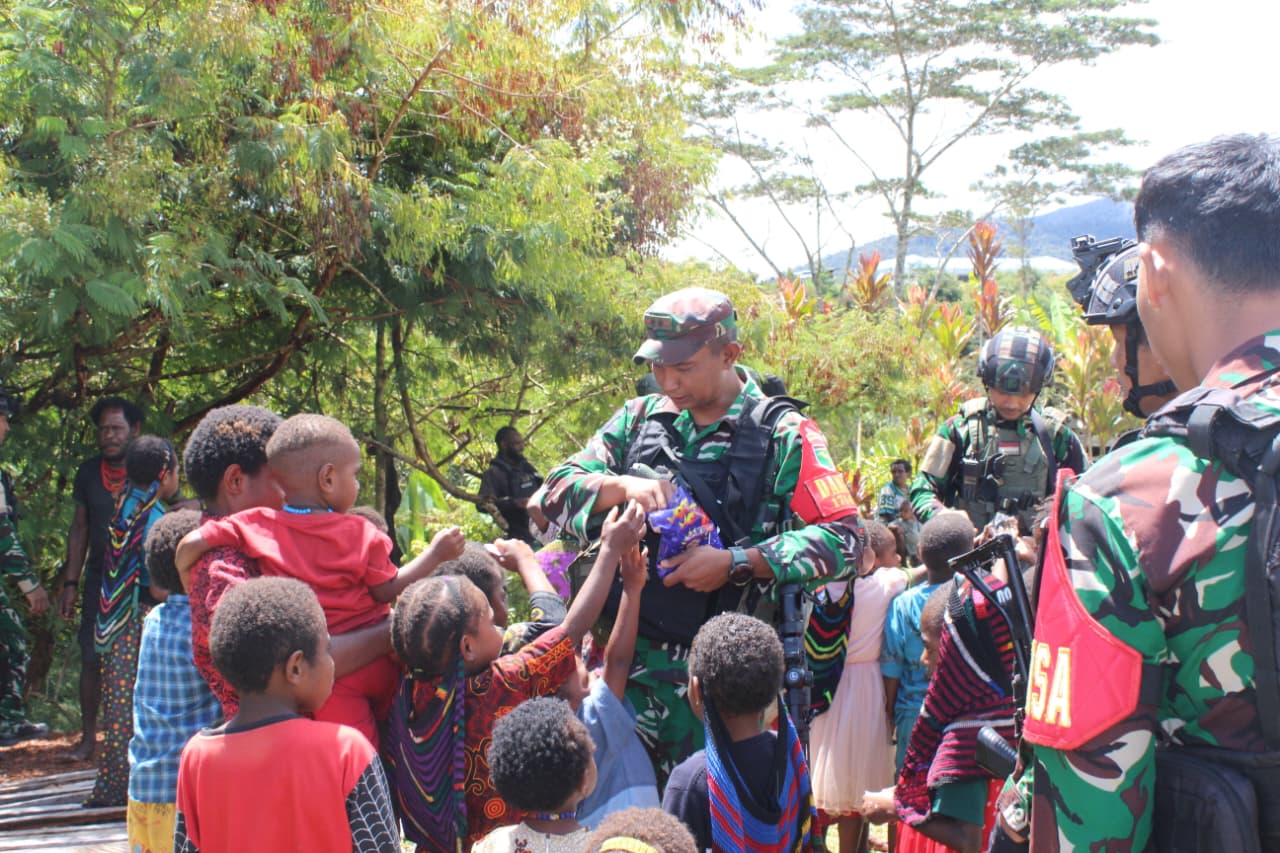 Puncak Jaya – Komandan Distrik Militer (Dandim) 1714/Puncak Jaya, Letkol Inf Bagus Kurniawan, M.Han., didampingi personel Makodim 1714/PJ, melaksanakan Peduli Kemanusiaan meninjau masyarakat pengungsi asal Distrik Sinak, Kabupaten Puncak.