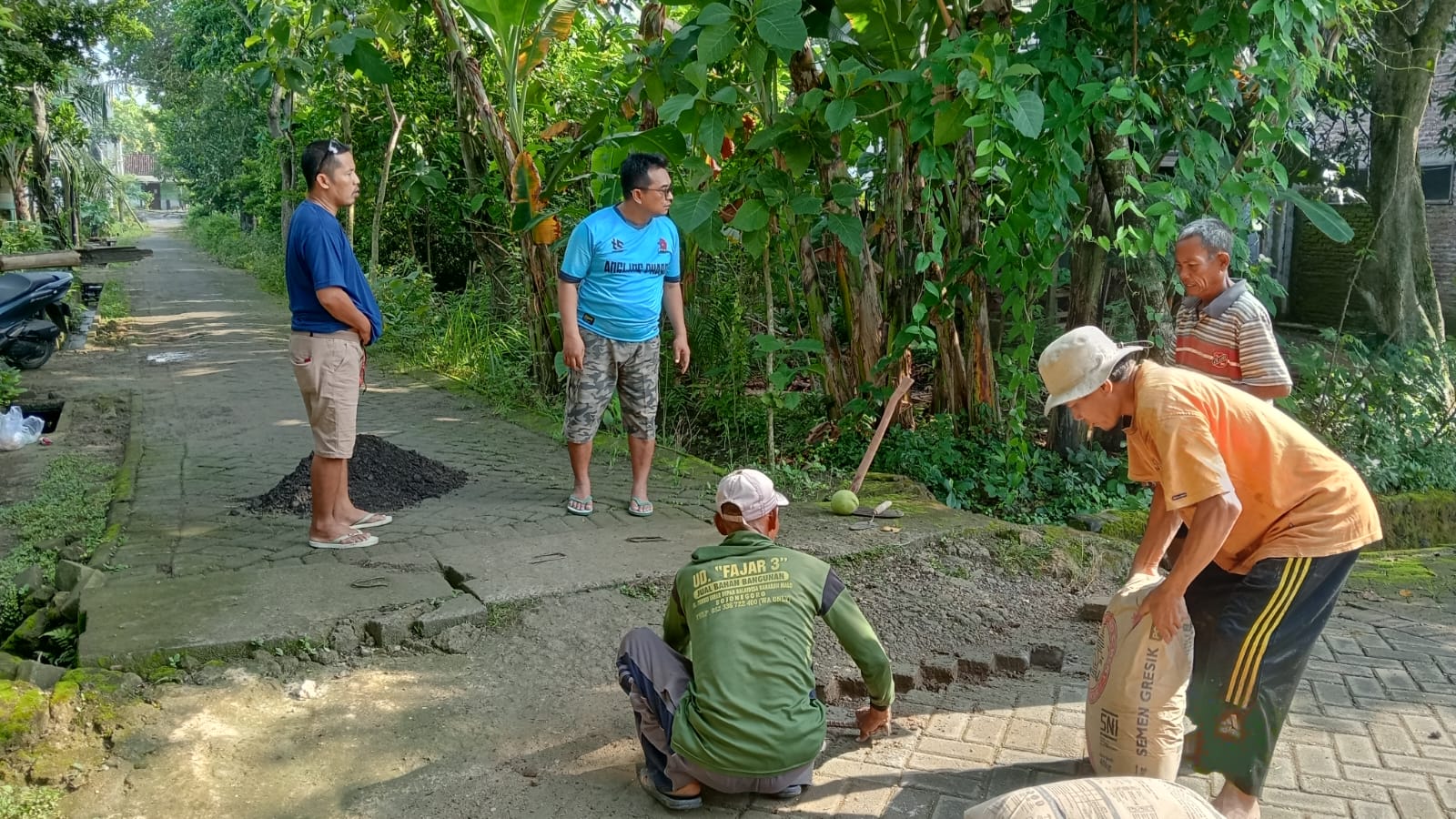 Perbaikan jalan dilakukan sebagai respons atas kondisi jalan lingkungan yang dinilai sudah tidak layak dan berdampak pada aktivitas sehari-hari warga. Di tengah lambatnya pembangunan infrastruktur desa, kolaborasi ini menjadi wujud kesadaran bersama untuk tidak hanya menunggu, tetapi turut berkontribusi langsung bagi kepentingan lingkungan.
