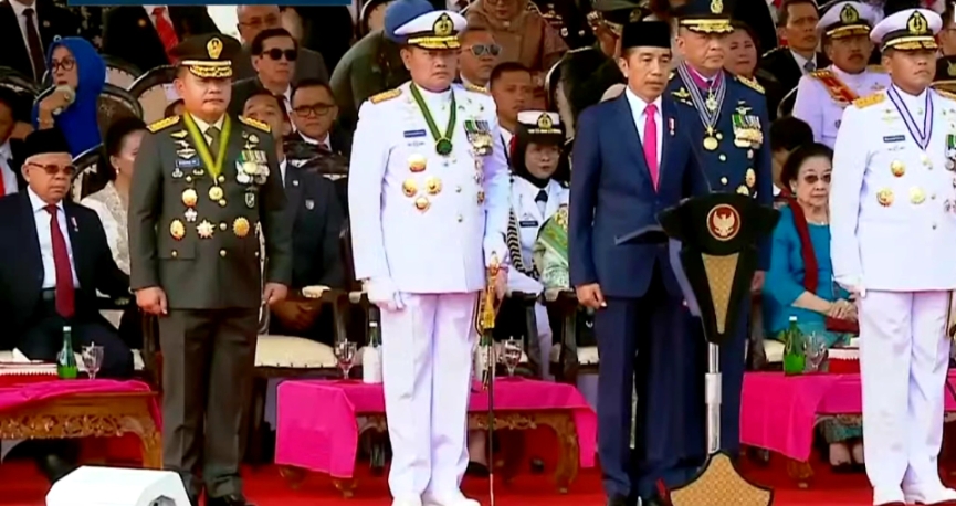 Sementara itu Presiden RI, Ir. Joko Widodo bertindak sebagai inspektur upacara, HUT ke-78 TNI.