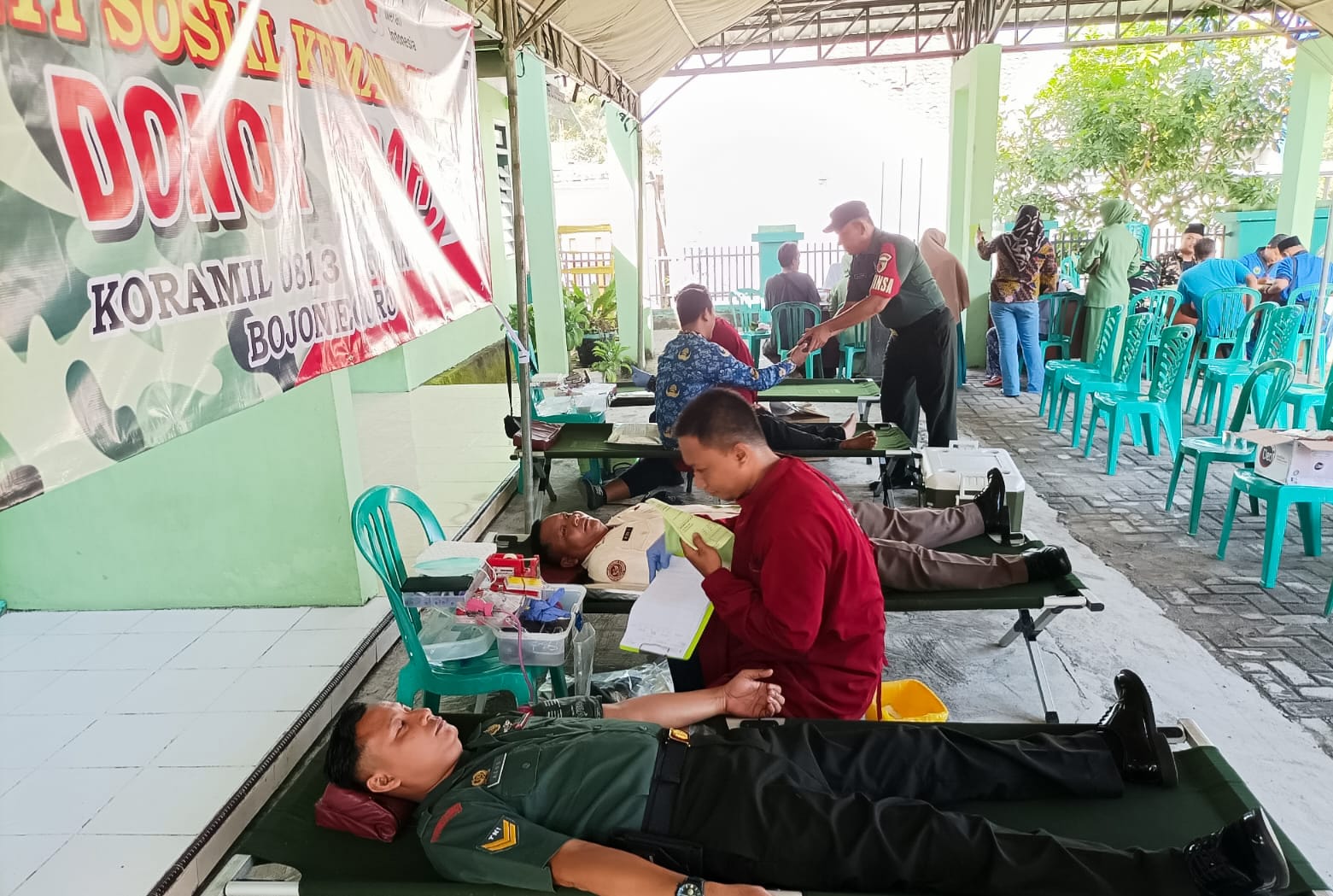 Bojonegoro,transpos.id – Sebagai wujud kepedulian terhadap sesama, Koramil 05/Dander Kodim 0813 Bojonegoro menggelar kegiatan bakti sosial donor darah. Kegiatan yang dilangsungkan dihalaman Makoramil ini bekerjasama dengan Palang Merah Indonesia (PMI) Bojonegoro.