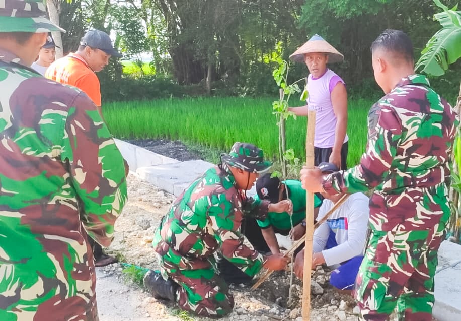 Bojonegoro,transpos.id – Dalam rangka menjaga kelestarian fungsi lingkungan hidup dan mencegah terjadinya kerusakan lingkungan, jajaran Bintara Pembina Desa (Babinsa) Koramil 02/Kapas Kodim 0813 Bojonegoro, bersama Pemerintah Desa (Pemdes) Bendo dan elemen masyarakat melaksanakan karya bakti penanaman pohon penghijauan di ruas jalan poros desa setempat, Jum’at (26/1/2024).
