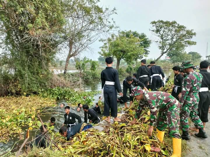 Lamongan – Banyaknya tanaman Enceng Gondok yang tersebar di sepanjang sungai primer Kruwul Dusun Baru dan Berasan Desa Kemlagilor Kecamatan Turi Kabupaten Lamongan Jawa Timur seakan membuat pihak Kodim 0812 Lamongan melalui Koramil 0812/03 Turi turun tangan.