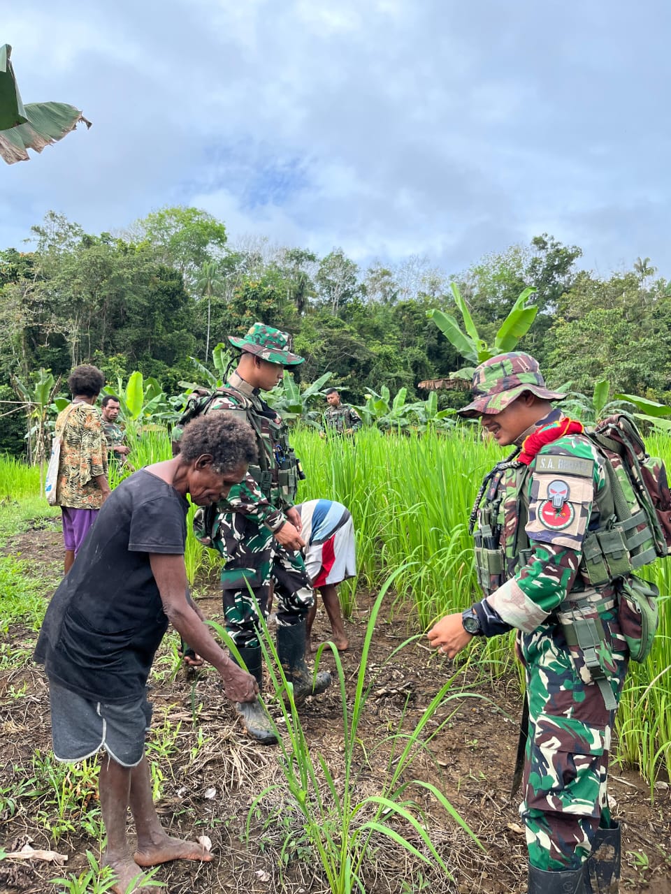 Dalam kegiatan ini, personel Satgas bersama warga bahu-membahu membersihkan area tanaman padi, pemupukan, dan memantau perkembangan padi. Keterlibatan aktif masyarakat menjadi indikator positif bahwa program hanpangan ini disambut antusias dan memberi manfaat nyata bagi kehidupan mereka.