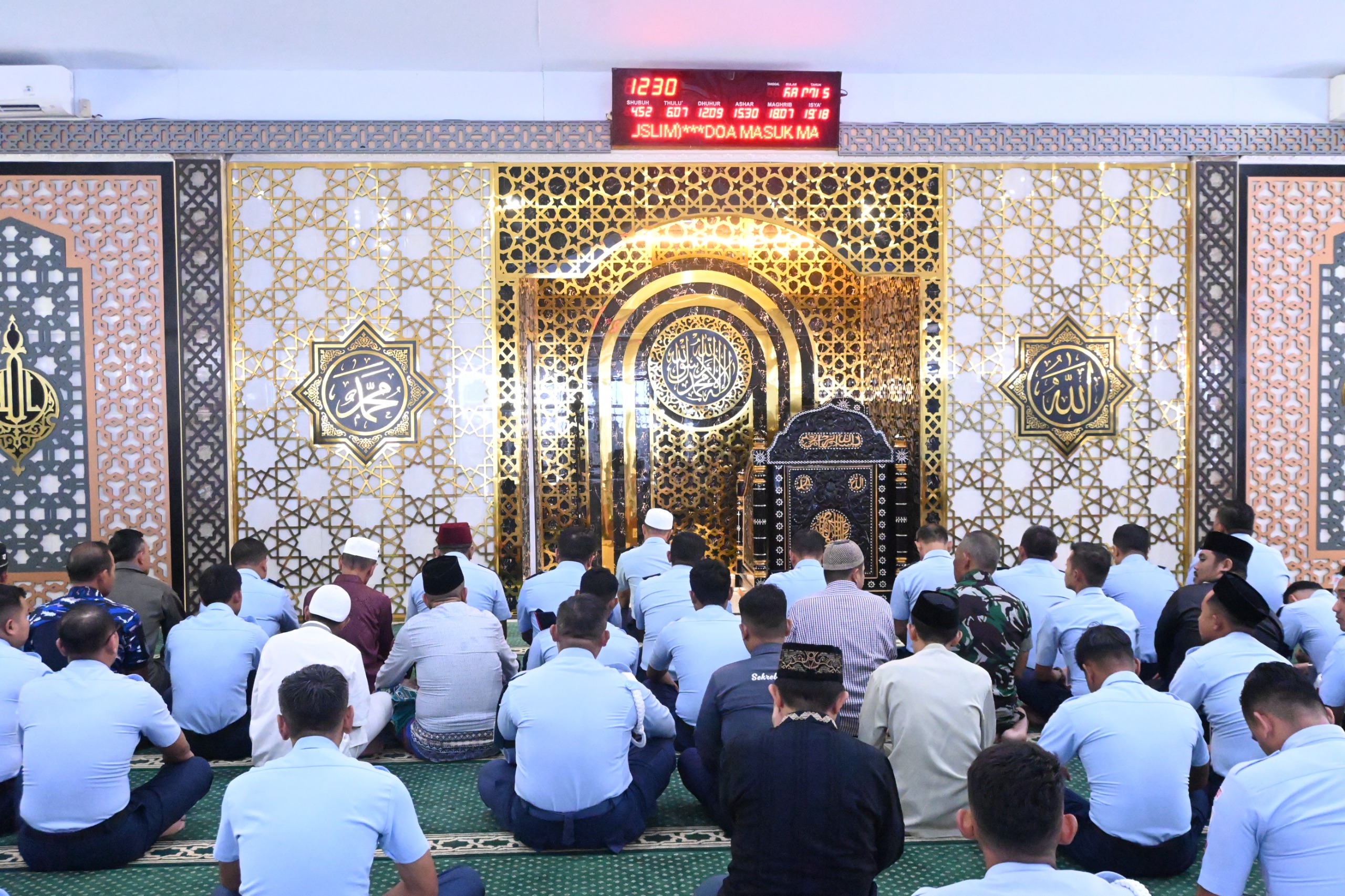Segenap personel Lanud Sultan Hasanuddin yang beragama Islam melaksanakan doa bersama di Masjid Nurussamawat, dihadiri oleh Komandan Lanud Sultan Hasanuddin Marsma TNI Arifaini Nur Dwiyanto., M.Han., beserta para pejabat. Diawali dengan Sholat Dzuhur berjamaah, doa bersama dipimpin langsung oleh Kabintal Lanud Sultan Hasanuddin Letkol Sus Mohammad Mohtar, S.Ag.
