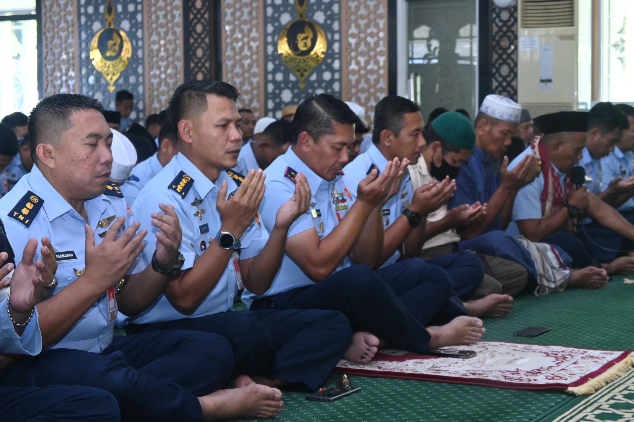Doa bersama dipimpin langsung oleh Kabintal Lanud Sultan Hasanuddin Letkol Sus Mohammad Mohtar, S. Ag. Kegiatan diawali dengan shalat Dzuhur berjamaah dilanjutkan doa bersama untuk memohon kepada Allah SWT agar rangkaian Latihan Matra Udara II Koopsud II, Sikatan Daya Tahun 2025 dapat berjalan aman, lancar dan selamat.