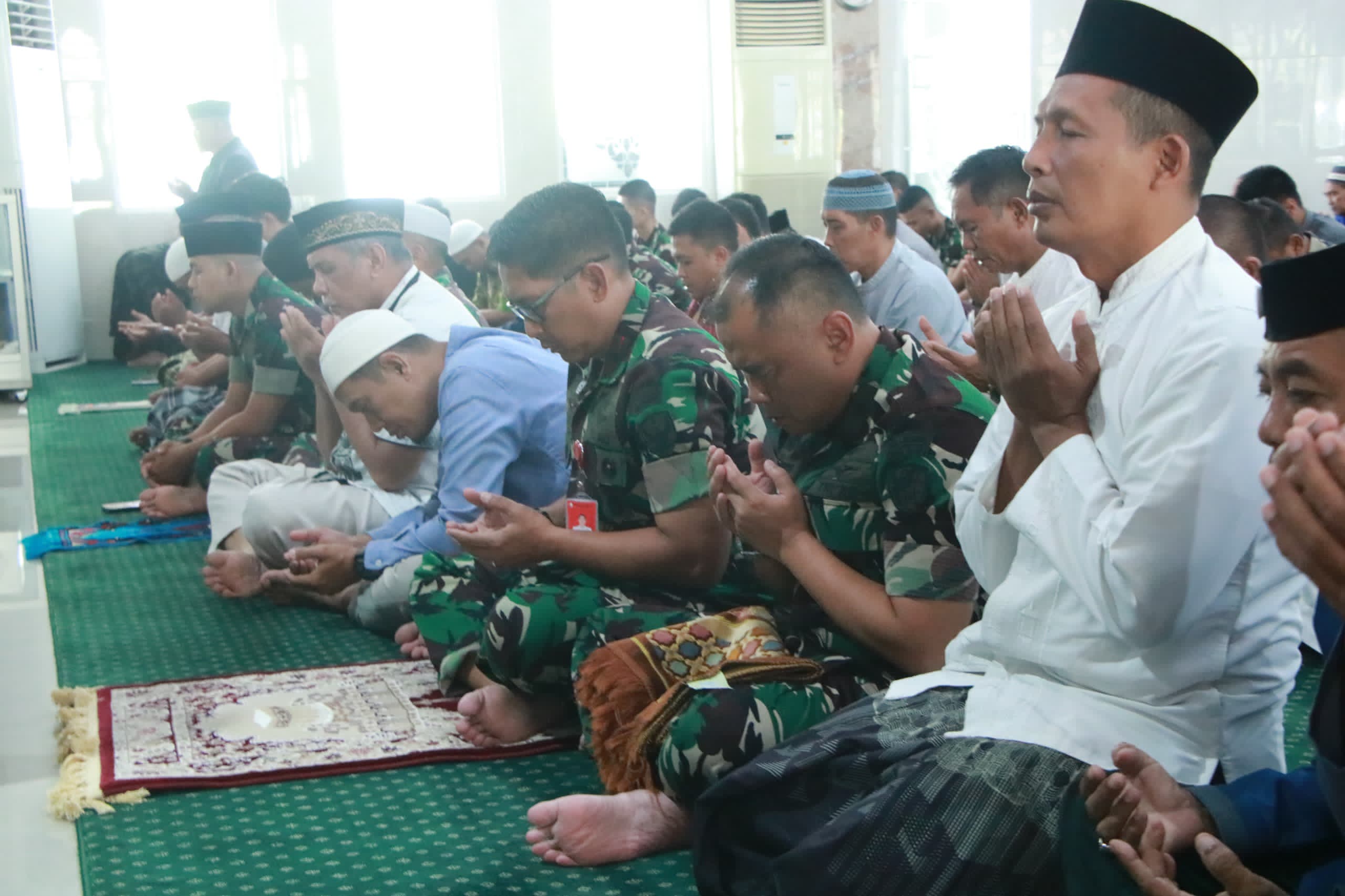 Doa bersama di Mesjid Nurussamawat Lanud Sultan Hasanuddin, dihadiri Komandan Lanud Sultan Hasanuddin Marsma TNI Bonang Bayuaji G., S.E., M.M., CHRMP., dan para Kadis serta seluruh personel Lanud Sultan Hasanuddin yang beragama Islam. Doa bersama diawali dengan pelaksanaan sholat Jumat berjamaah dilanjutkan dengan membaca doa yang dipimpin langsung oleh Kabintal Lanud Sultan Hasanuddin, Letkol Sus Mohammad Mohtar, S. Ag.