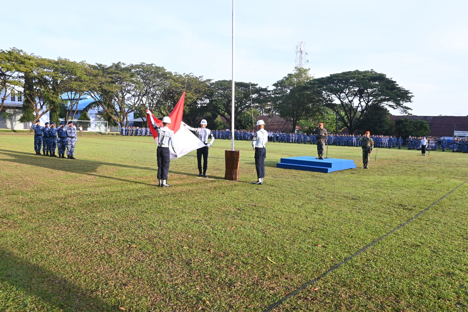 Makassar – Komandan Wing Komando (Danwingko) II Kopasgat Kolonel Pas Agus Triono, S.E., memimpin Upacara Bendera 17-an yang diikuti seluruh personel mulai dari para Kepala Dinas, Komandan Satuan, Kepala Satuan Kerja dan Pegawai Negeri Sipil Lanud Sultan Hasanuddin, bertempat di Lapangan Markas Komando (Mako) Lanud Hasanuddin,, Makassar, Senin (17/7/2025)