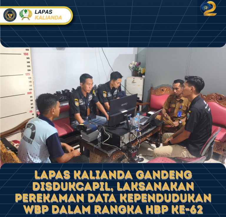 Kalianda Transpos.id. – Dalam rangka memperingati Hari Bakti Pemasyarakatan ke-62, Lembaga Pemasyarakatan Kelas IIA Kalianda bekerja sama dengan Dinas Kependudukan dan Pencatatan Sipil (Disdukcapil) melaksanakan kegiatan perekaman data kependudukan bagi Warga Binaan Pemasyarakatan (WBP), Senin (27/4).