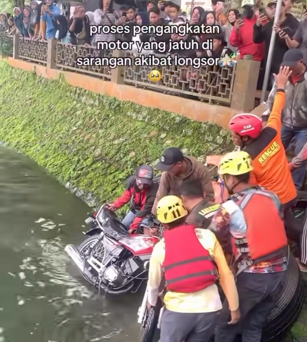 Magetan — Liburan santai wisatawan di kawasan Telaga Sarangan, Kabupaten Magetan, Jawa Timur, mendadak berubah menjadi momen menegangkan. Tanah di sekitar area wisata tersebut tiba-tiba longsor pada Sabtu (17/6/2026) sekitar pukul 10.45 WIB, menyebabkan sejumlah sepeda motor pengunjung tercebur ke dalam telaga.