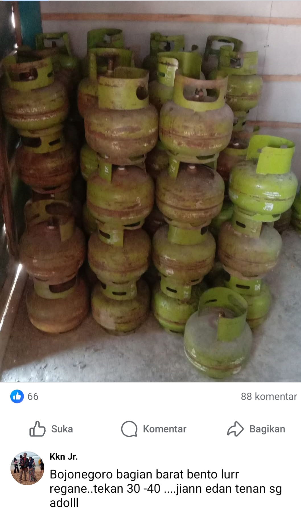 Di berbagai wilayah, warga mengeluhkan sulitnya mendapatkan LPG 3 kg. Jika pun tersedia, harganya melonjak hingga Rp40 ribu per tabung. Ironisnya, di media sosial justru marak penawaran yang mencapai Rp100 ribu untuk dua tabung.