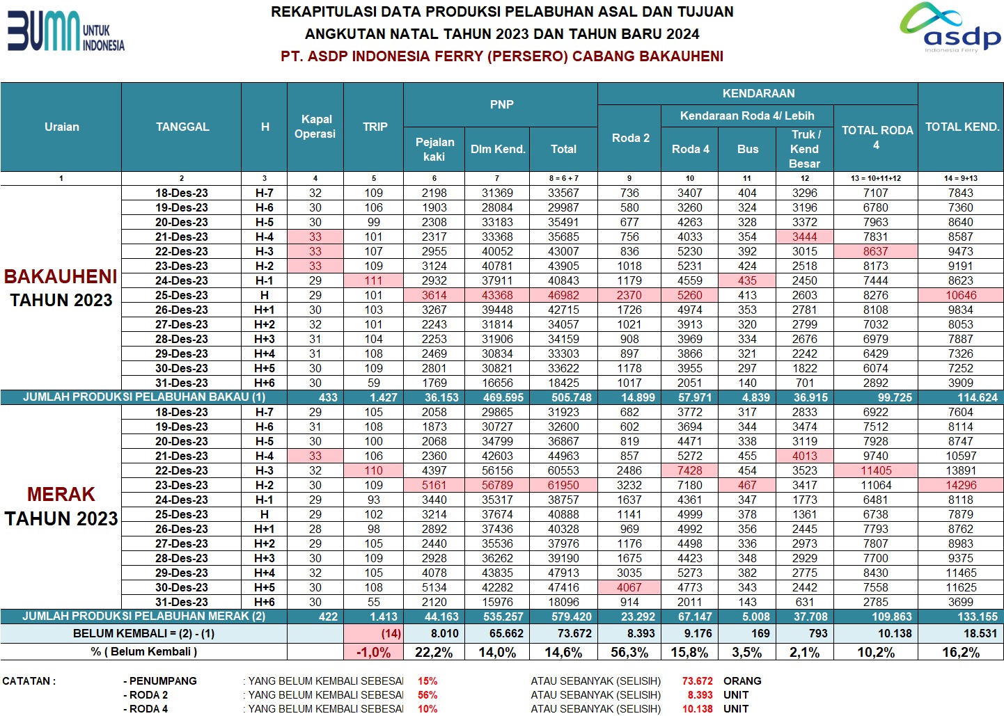 Menyampaikan Data Posko Angkutan Natal Tahun 2023 dan Tahun Baru 2024 di *Pelabuhan Penyeberangan Bakauheni*