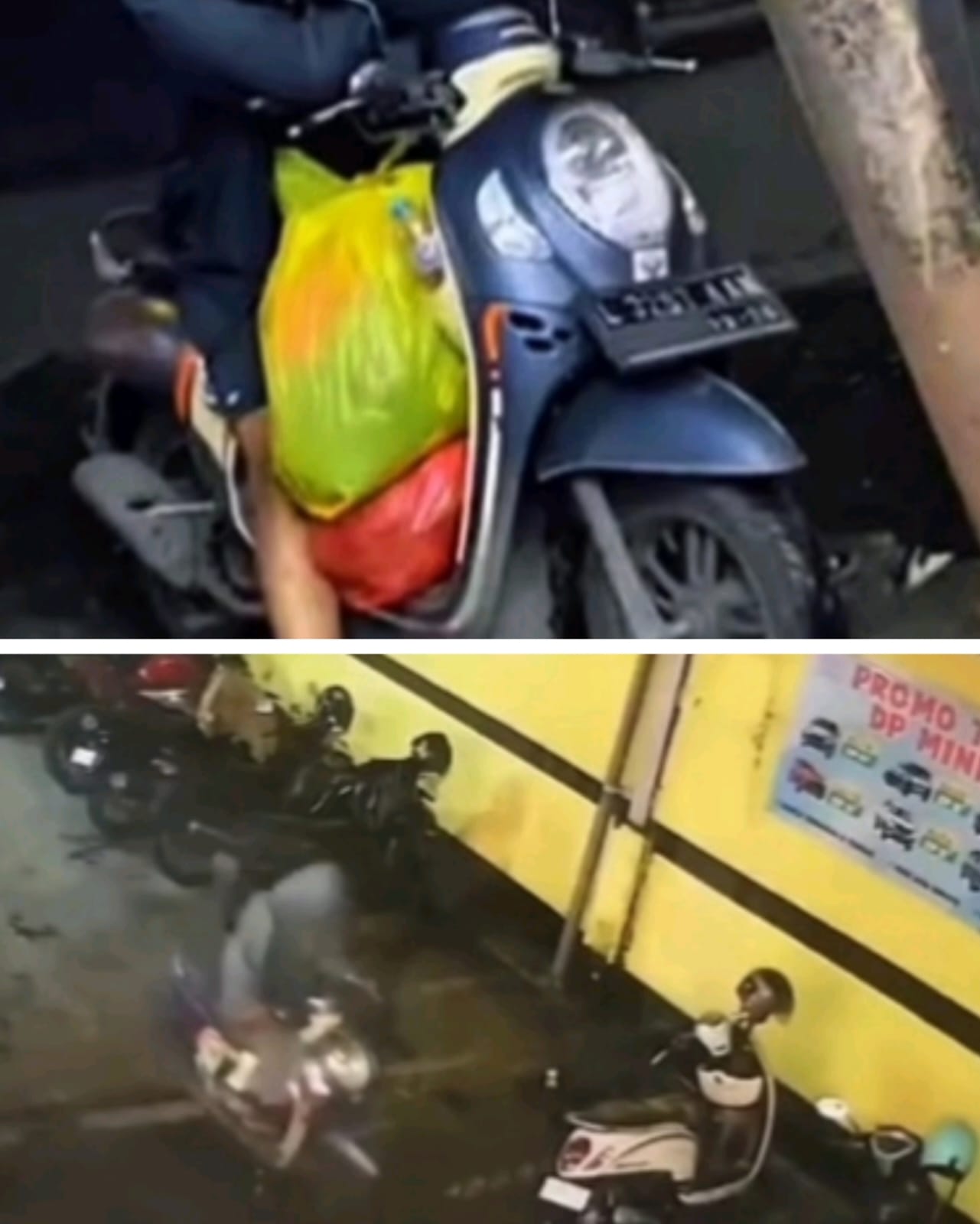 Sepeda motor Honda Scoopy Nomor Polisi L 3257 AAN milik pengunjung raib digondol maling saat diparkir di warung, aksi pelaku terekam kamera pengintai CCTV dan viral di pelapfon sosial media IG (Instagram).