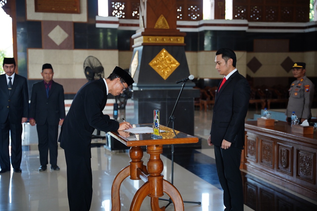 Tuban – Bupati Tuban, Aditya Halindra Faridzky, SE., memimpin langsung pelantikan dan pengambilan sumpah/janji Jabatan Pimpinan Tinggi (JPT) Pratama di lingkungan Pemerintah Kabupaten Tuban, Kamis (31/07). Pelantikan yang digelar di Pendapa Kridha Manunggal tersebut mengukuhkan pergeseran jabatan terhadap 8 pimpinan Organisasi Perangkat Daerah (OPD).