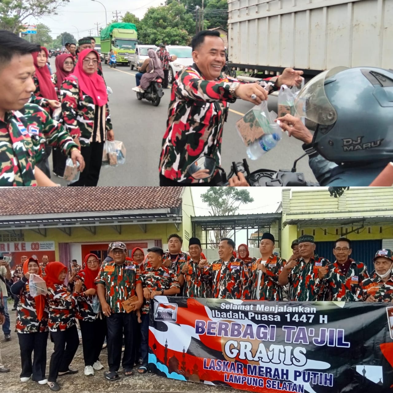 Lampung Selatan, Transpos.id. – Suasana penuh kebersamaan dan kehangatan Ramadan terasa di depan Kantor Markas Cabang Laskar Merah Putih Kabupaten Lampung Selatan, pada Rabu (4/3/2026) sore.