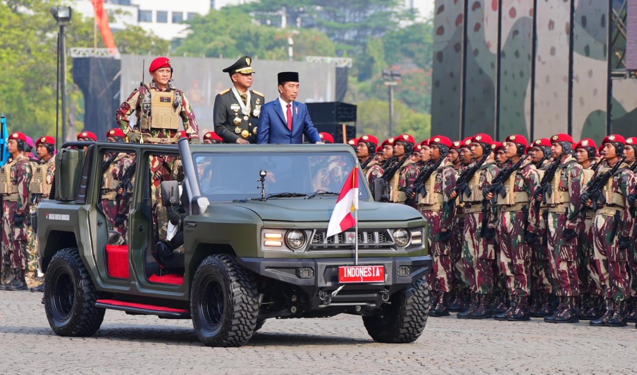 Jakarta, transpos.id – Panglima TNI Jenderal TNI Agus Subiyanto bersama Kasad Jenderal TNI Maruli Simanjuntak, Kasal Laksamana TNI Muhammad Ali dan Kasau Marsekal TNI Mohamad Tonny Harjono mendampingi Presiden RI Joko Widodo sebagai Inspektur Upacara pada Upacara Peringatan HUT Ke-79 TNI Tahun 2024, bertempat di Lapangan Silang Monas, Jakarta Pusat, Sabtu (5/10/2024).