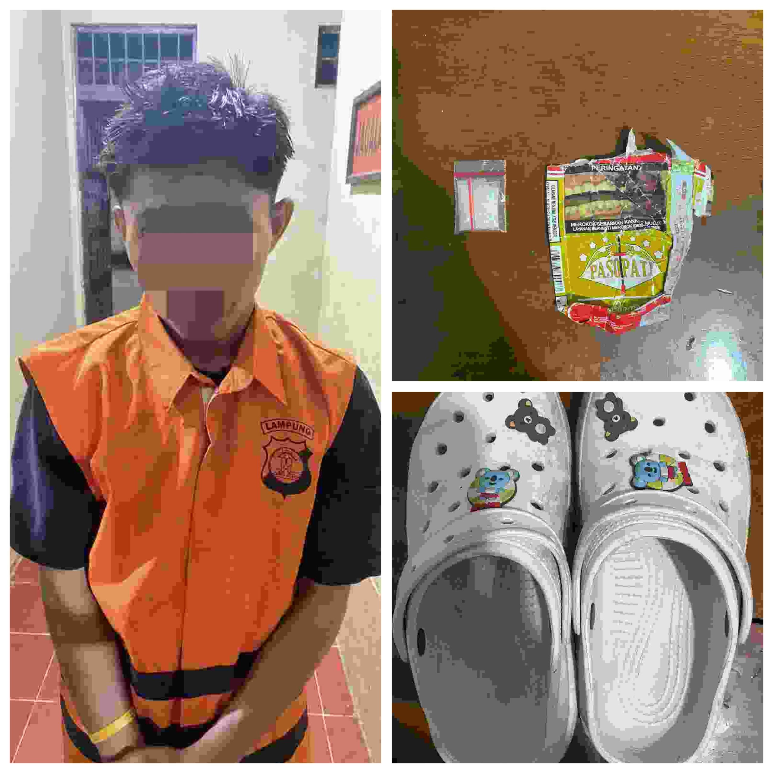 Namun, saat digeledah satu dari salah satu tersangka membuang sandal yang dipakainya dan ternyata ada rokok kretek merek Senopati berisikan satu bungkus kecil serbuk kristal warna putih yang di duga narkotika golongan 1 jenis sabu.
