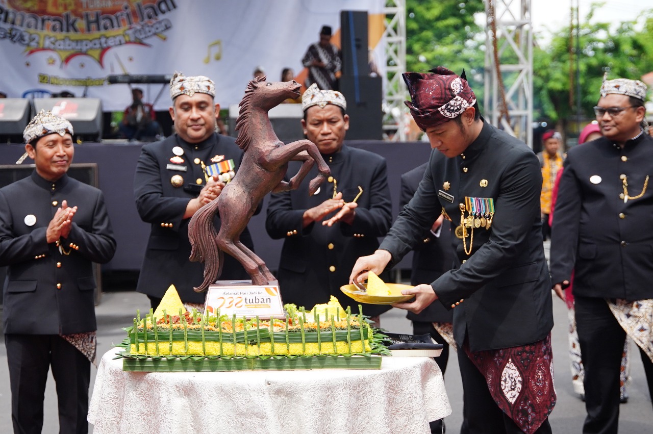 Dalam sambutannya, Bupati Tuban, Aditya Halindra Faridzky menyampaikan rasa syukur atas perjalanan panjang Bumi Ronggolawe yang telah berdiri selama 732 tahun. Menurutnya, usia tersebut mencerminkan keteguhan dan semangat kebersamaan masyarakat Tuban yang terus diwariskan dari generasi ke generasi.