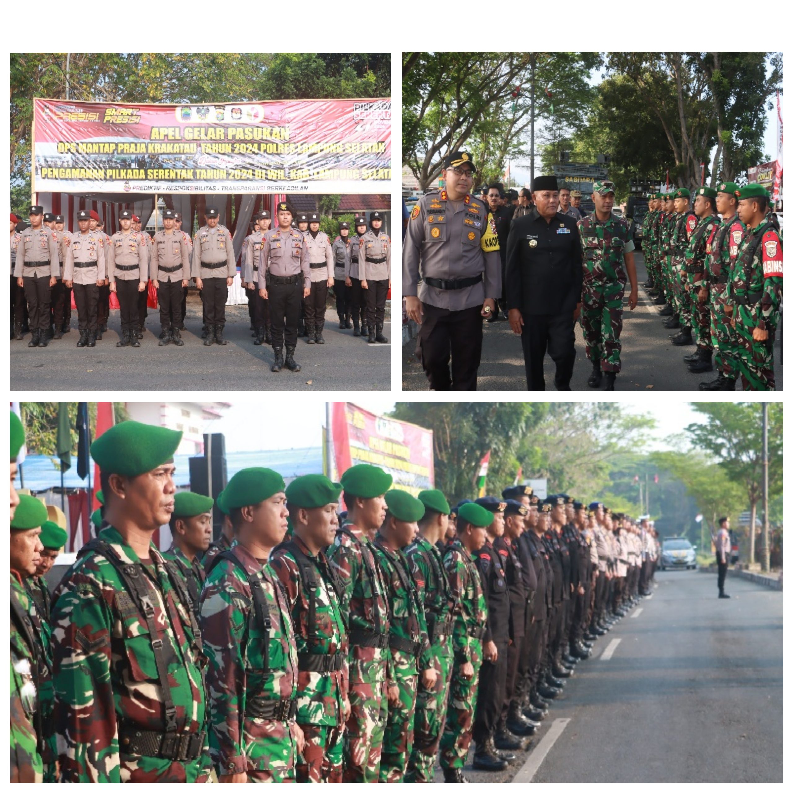 Apel Gelar Pasukan ini diikuti ratusan personel gabungan dari Polres Lampung Selatan, Kodim 0421/LS, Satpol PP Pemda Lamsel, Anggota KPUD Lamsel, Linmas, Senkom dan elemen masyarakat lainnya.