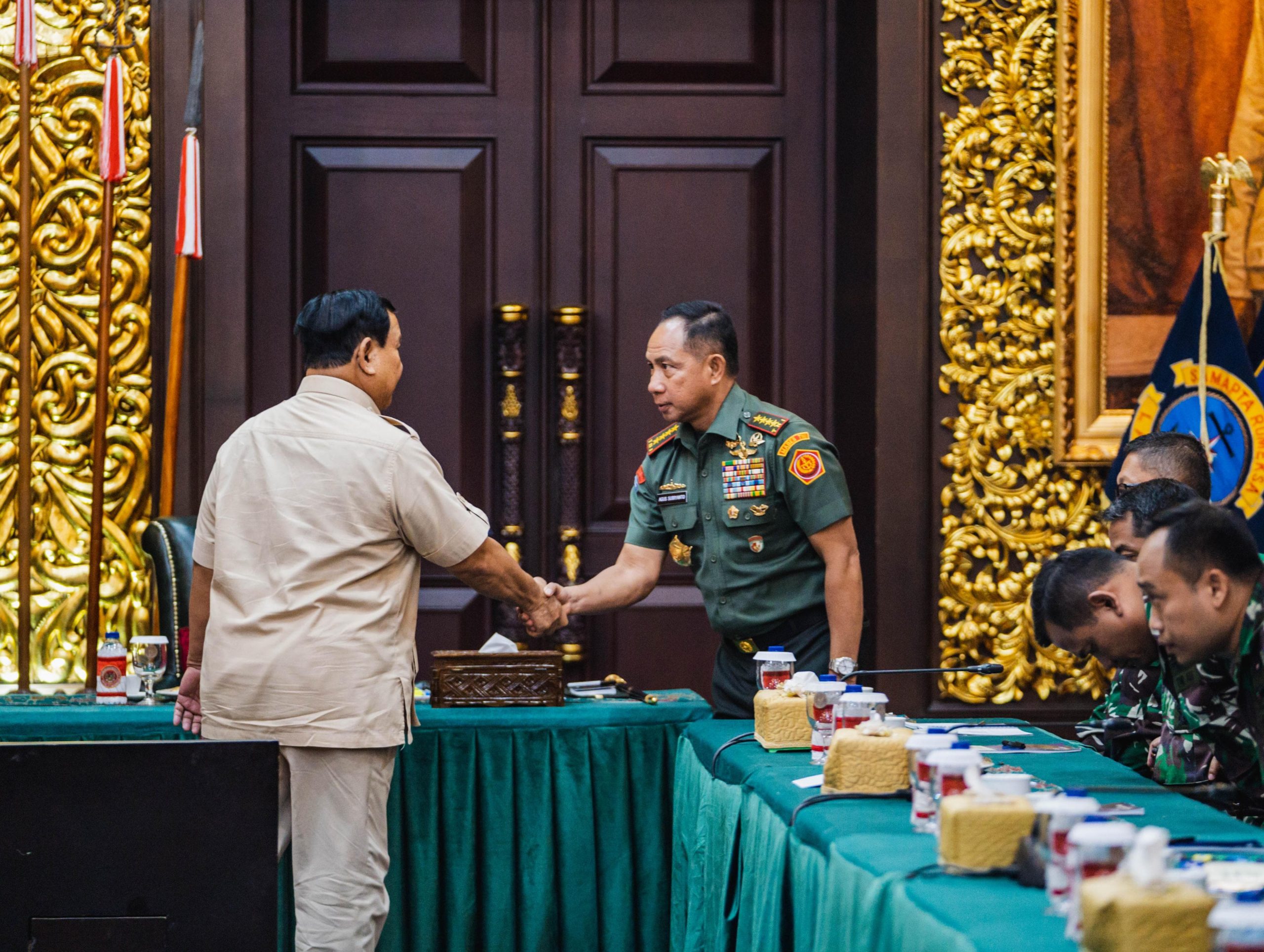 Jakarta, transpos.id – Panglima TNI Jenderal TNI Agus Subiyanto mendampingi Menteri Pertahanan RI Prabowo Subianto memberikan pembekalan kepada 40 personel tenaga kesehatan (Nakes) TNI yang akan menjalan misi kemanusiaan di Gaza, bertempat di Ruang Bhinneka Tunggal Ika (BTI), Kantor Kementerian Pertahanan RI, Jakarta Pusat, Rabu (7/8/2024).