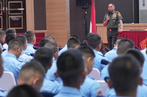 Jakarta – Panglima TNI Jenderal TNI Agus Subiyanto memberikan pembekalan kepada siswa-siswi Kelas XI Angkatan ke-34 SMA Taruna Nusantara di Aula Gatot Subroto, Mabes TNI, Cilangkap, Jakarta Timur, Selasa (29/4/2025). Kegiatan ini merupakan bagian dari kunjungan karya wisata yang bertujuan membangun karakter, menanamkan nasionalisme, serta membentuk jiwa kepemimpinan generasi muda sebagai investasi masa depan bangsa.