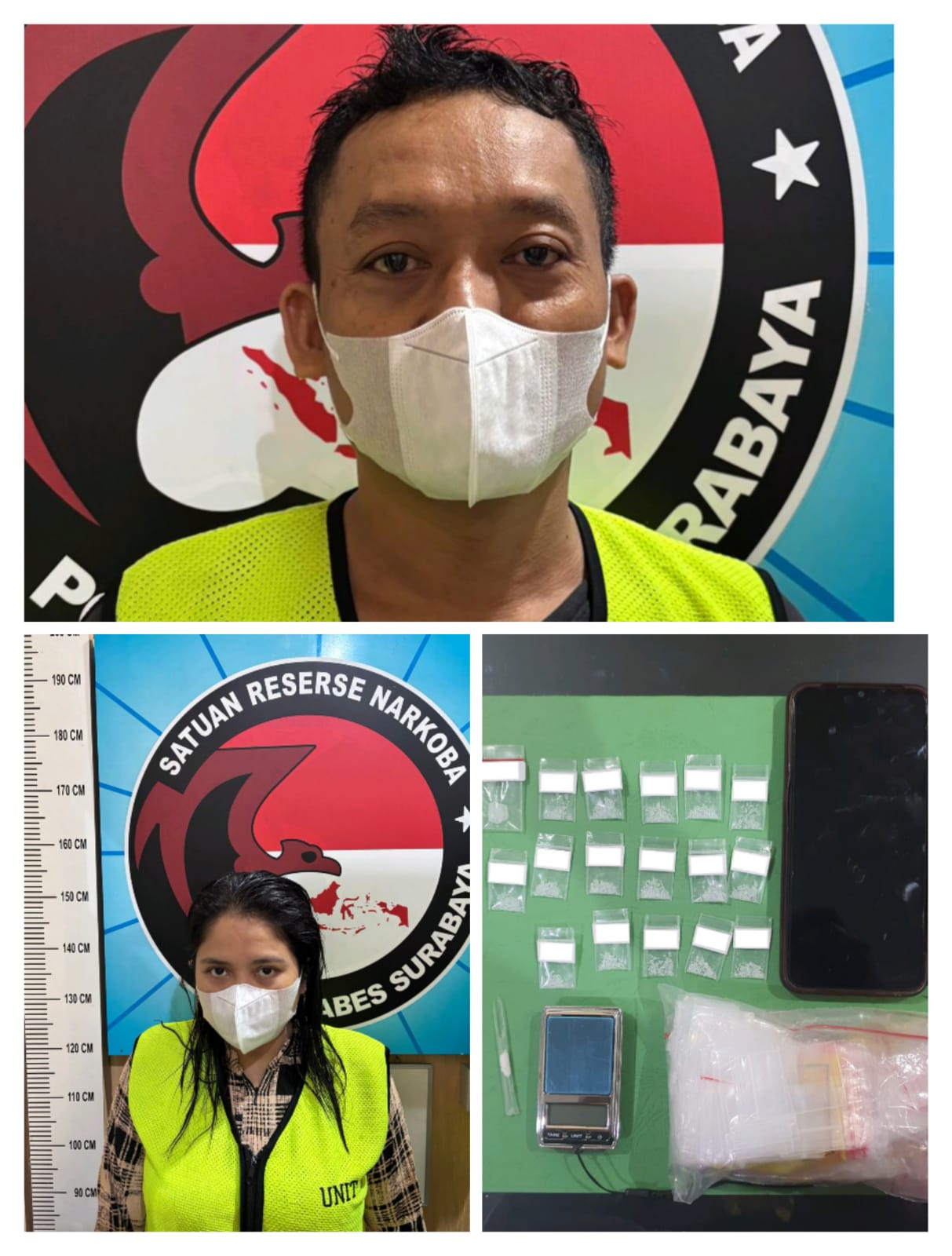 Kapolrestabes Surabaya Kombespol Luthfie Sulistiawan melalui Kasat Narkoba AKBP Suria Miftah mengungkapkan penangkapan bermula dari informasi masyarakat yang curiga dengan aktivitas pasangan tersebut. Polisi melakukan penggerebekan pada pukul 23.30 WIB di rumah kontrakan mereka.