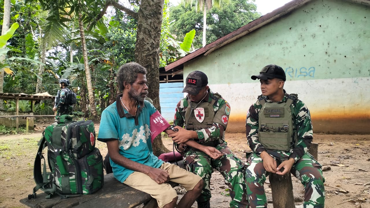 Pelayanan kesehatan kali ini menyasar langsung ke rumah warga, termasuk Bapak Kaitanus Sanggra (42), seorang petani setempat yang menerima pemeriksaan kesehatan serta pemberian obat-obatan sesuai dengan keluhan yang dirasakan. Kegiatan ini disambut hangat oleh warga yang merasa terbantu dengan kehadiran personel TNI di tengah-tengah mereka.