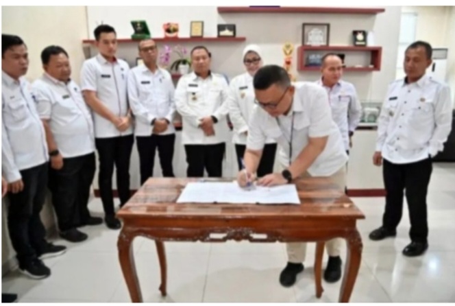 Penandatanganan kerja sama itu turut disaksikan oleh Penjabat (Pj) Sekretaris Daerah (Sekda) Kabupaten Lampung Selatan, Intji Indriati, yang berlangsung di ruang rapat Sekda setempat, Kamis (15/01/2025).