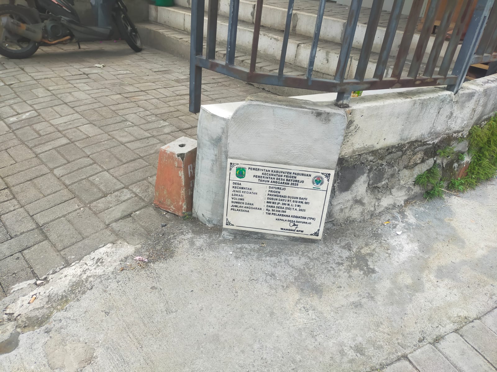 Desa Dayurejo, Kecamatan Prigen, Kabupaten Pasuruan, mengalokasikan Dana Desa untuk melaksanakan Pembangunan Jalan Paving di Dusun Dayu.