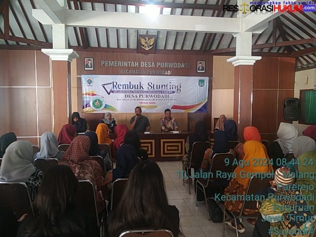 Acara rembug Stunting tersebut, dihadiri oleh Kepada Desa Purwodadi Mulyono, Bidan Desa, pendamping Desa, ketua BPD dan para kader tim percepatan penurunan stunting desa Purwodadi.
