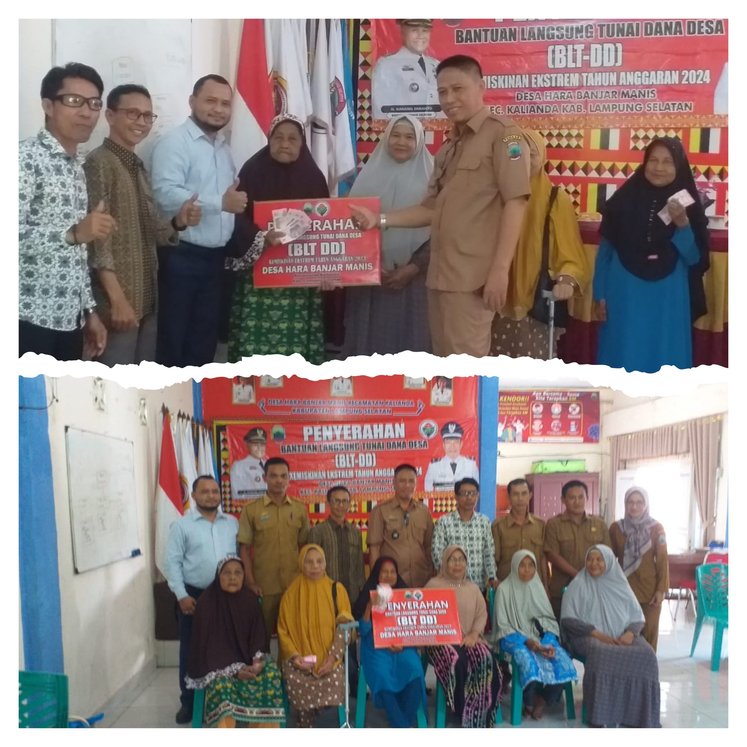 Kegiatan penyaluran tersebut darì pukul 09:00 Wib sampai dengan selesai yang terdiri dari enam (6) KPM (Keluarga Penerima Manfaat, di Aula Kantor Desa Hara Banjar Manis (HBM) Kecamatan Kalianda Kabupaten Lampung Selatan, pada Kamis (04/06/2024) pagi hari.