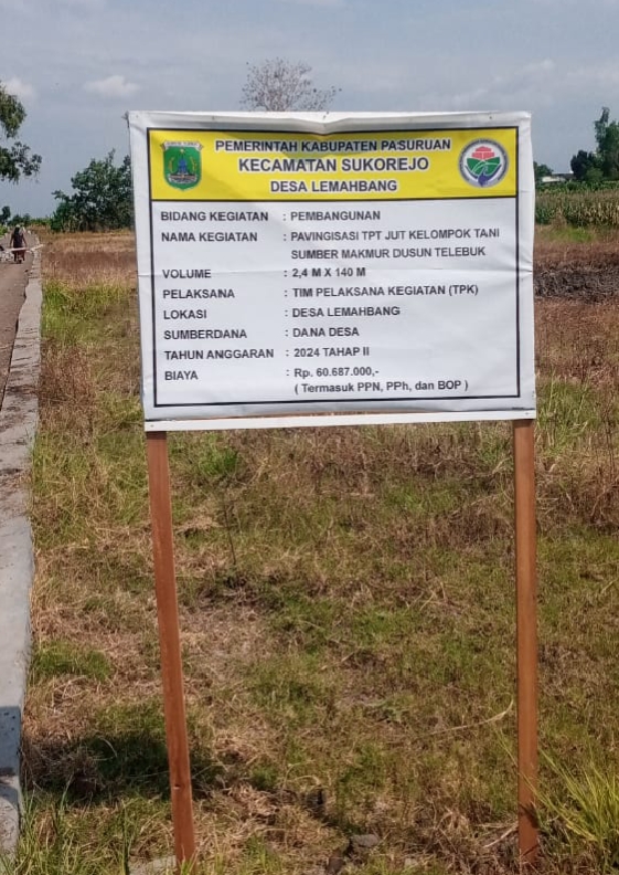 Jalan Usaha Tani (JUT) menjadi salah satu program kerja Pemerintah Desa Lemahbang. Pembangunan tersebut bertempat di Dusun telebuk RT 001 RW 0012. Pembangunan pavingisasi di area pertanian Dusun Telebuk merupakan lanjutan dari TPT Tahun Anggaran 2024.imbuhnya