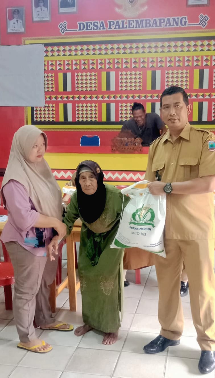 – Proses penyaluran bantuan dilakukan di Kantor Balai Desa Palembapang.